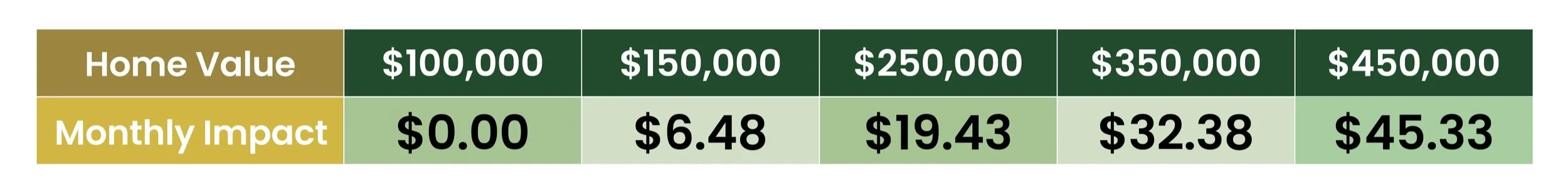Impact includes $100,000 homestead exemption. All Texas homeowners are eligible to receive a $100,000 State Homestead Exemption on school taxes. (e.g. $200,000 home value less $100,000 mandatory homestead exemption equals $100,000 in taxable value)